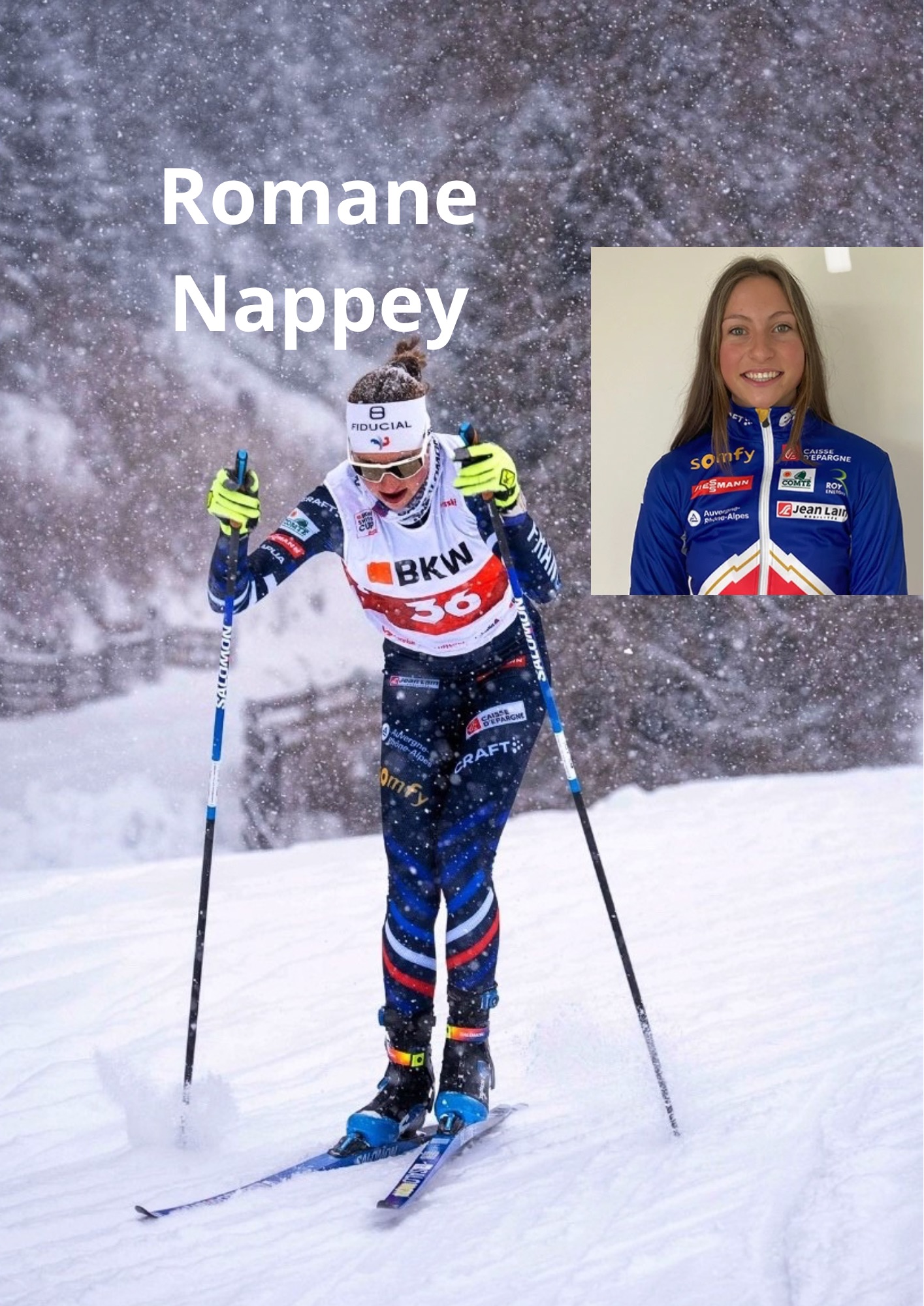 Je m’appelle Romane Nappey, je pratique le ski de fond à haut niveau et je suis licenciée au Ski Club Val de Morteau en catégorie U20 (2ᵉ année). Grâce à mes résultats, j’ai été inscrite sur la liste ministérielle des sportives espoirs et j’ai intégré l’Équipe de France Junior Excellence 2030.