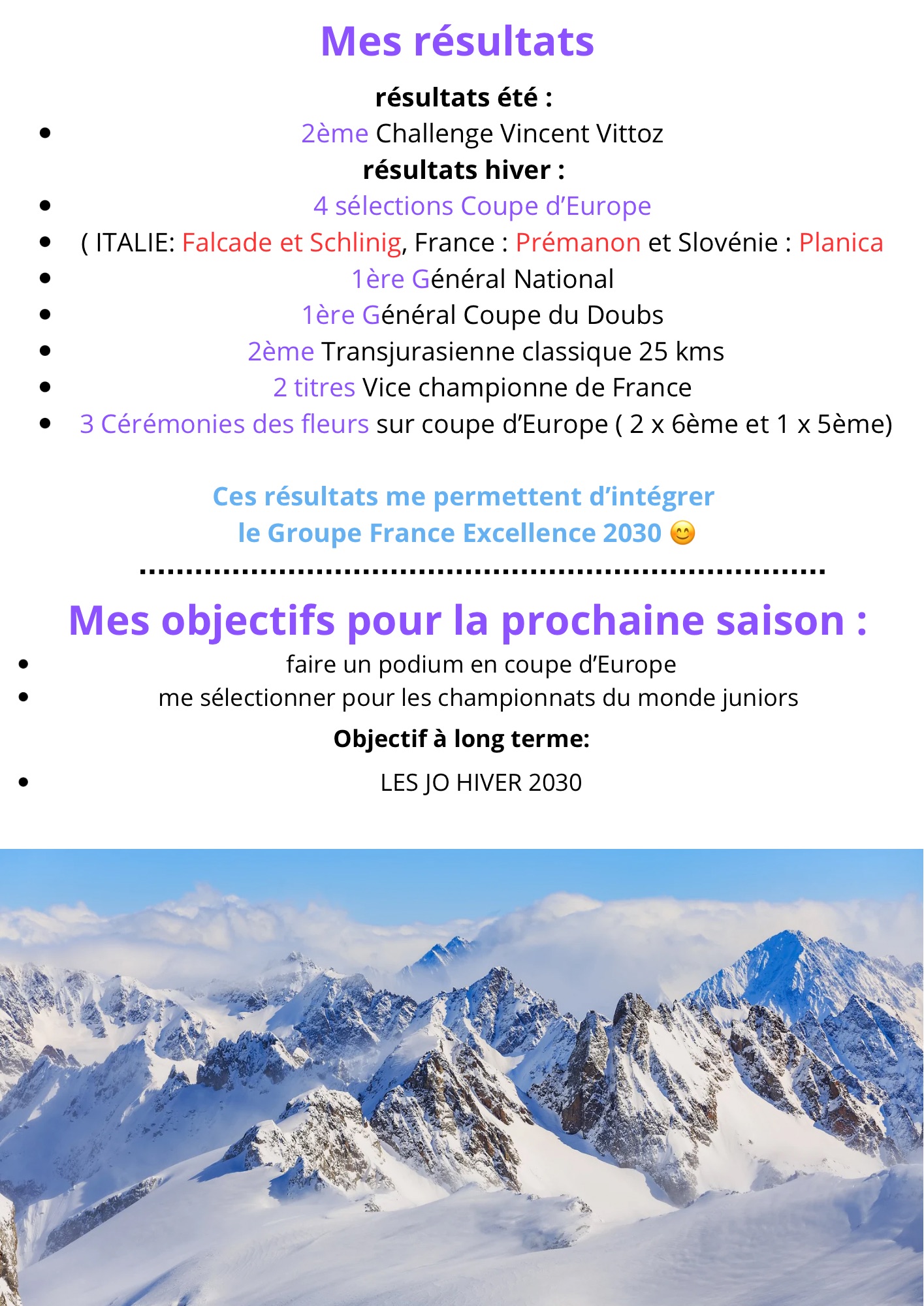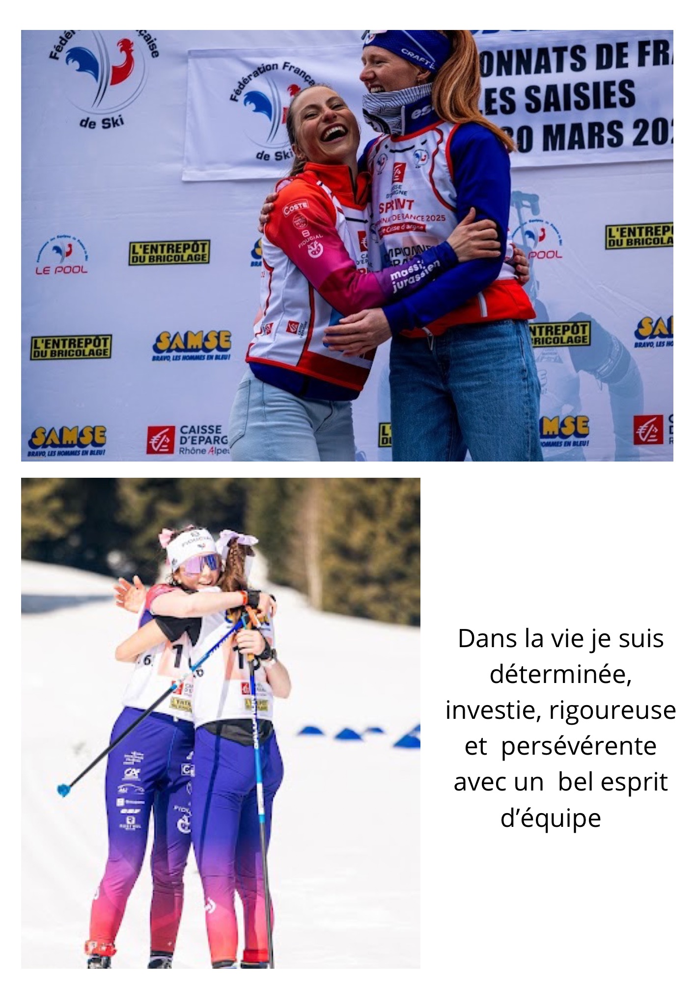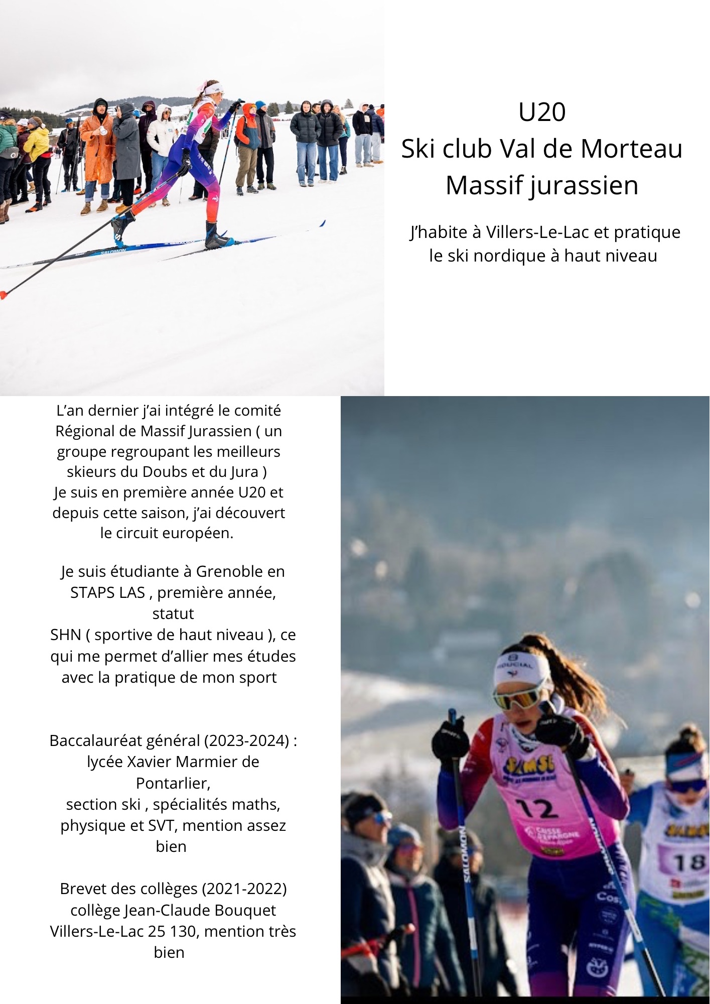 🎓 Études actuelles : STAPS LAS – 1ʳᵉ année à Grenoble, statut SHN (sportive de haut niveau), permettant d’allier sport et études