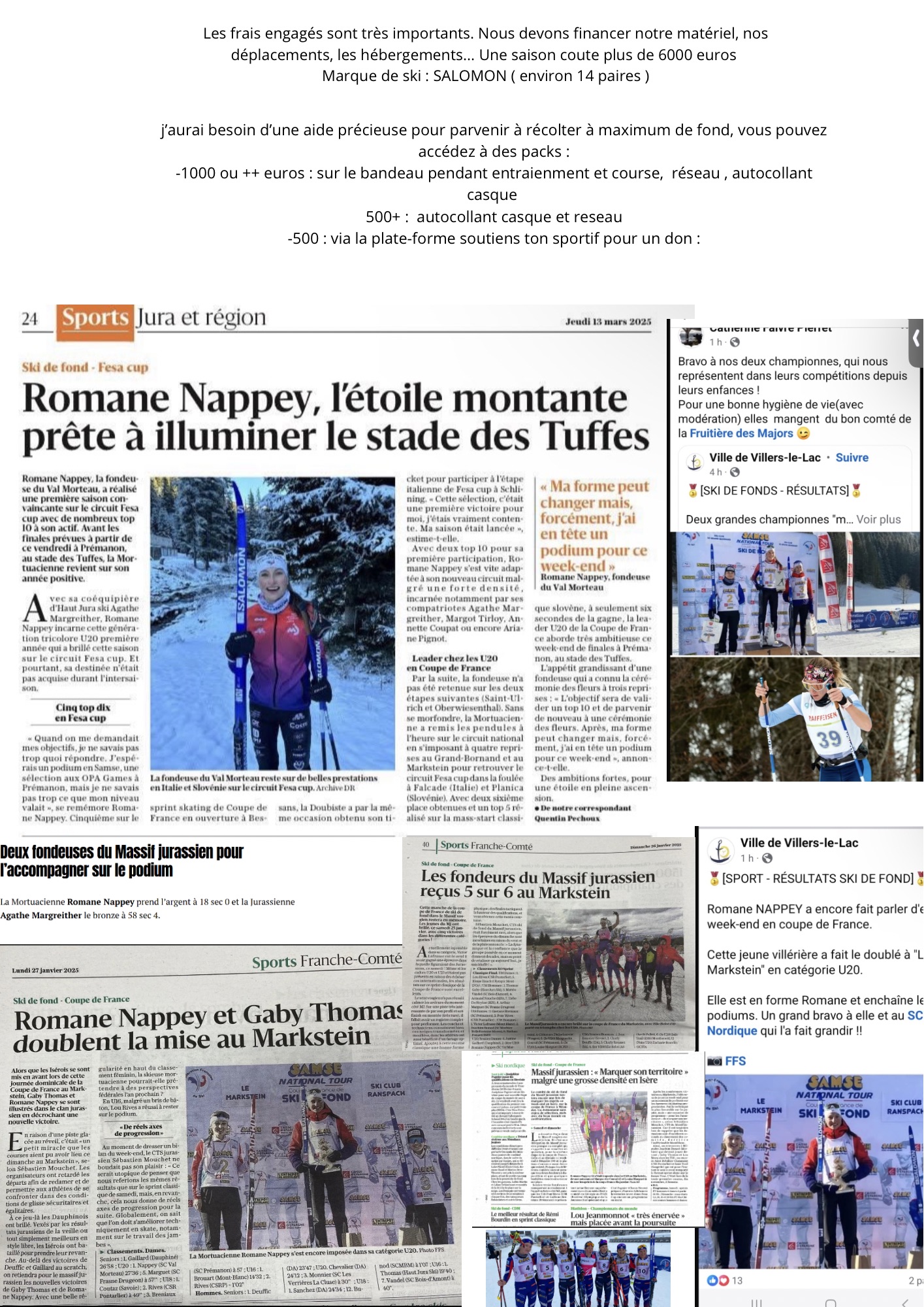 Ces frais importants m’amènent à rechercher des soutiens financiers et matériels supplémentaires afin de poursuivre ma progression et atteindre mes objectifs sportifs.